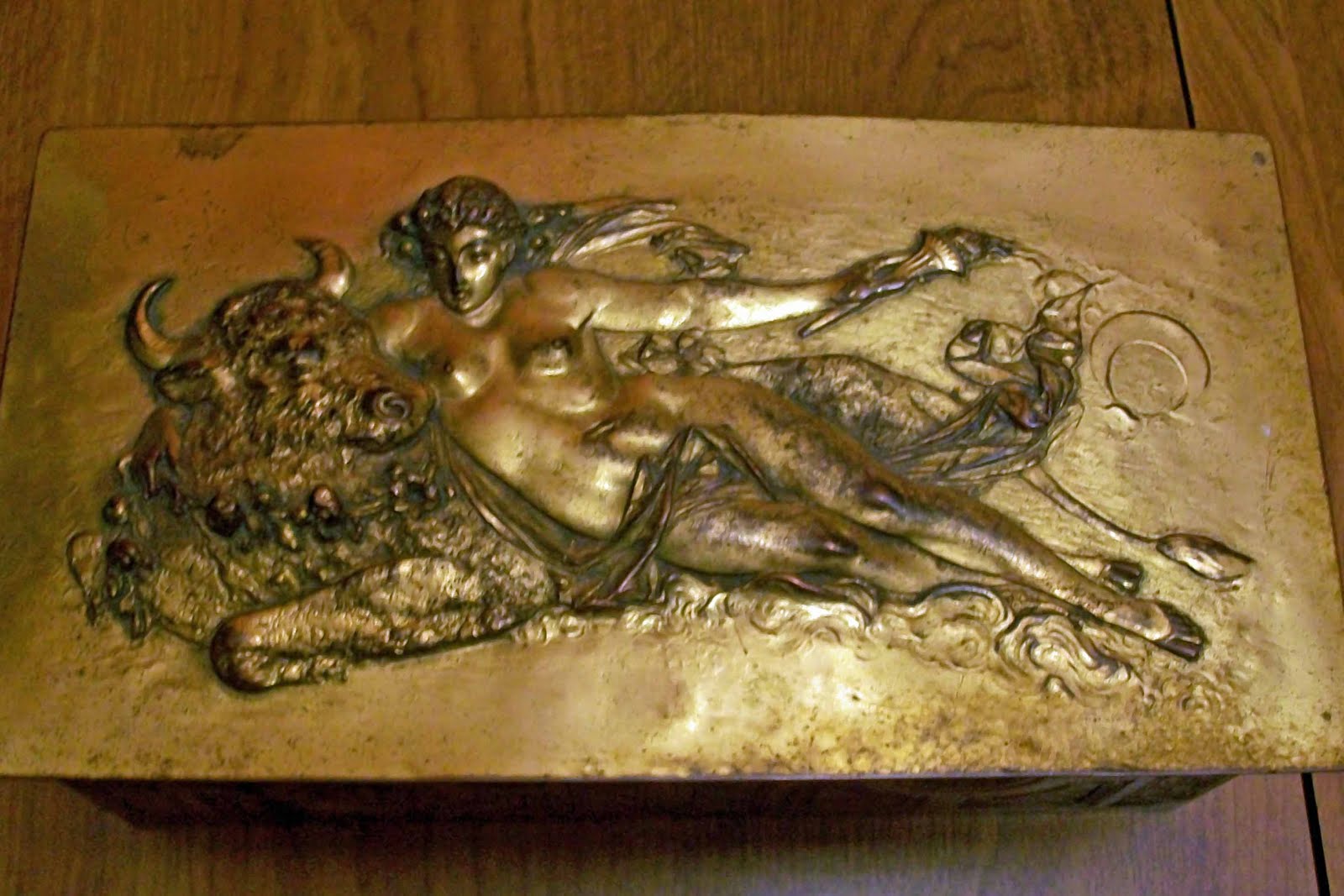 I was wondering if you know anything about this box I have. It's cedar covered with metal. On the top is embossed Europa and the Bull and the sides are decorated with abstact designs. On the bottom A.J. Tuck Co. New York is imprinted into the metal edge. I'm assuming this is a biscuit or cigar box but I can't find anything on Tuck. Any info would be appreciated. I nabbed this out of a box lot and it's one of my favorite possessions.